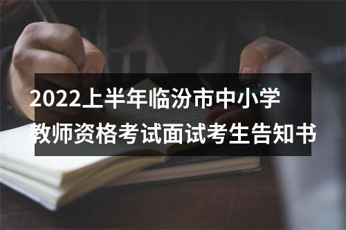 原标题:临汾市2022年上半年中小学教师资格考试面试考生告知书