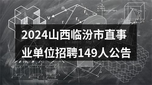 为进一步加强事业单位工作人员队伍建设,根据《事业单位人事管理条例》和我省《关于进一步改进和加强事业单位公开招聘工作的意见》(晋人社厅发〔2017〕35号)、《关于做好2024年全省事业单位公开招聘工作的通知》(晋人社厅发〔2023〕88号)等政策规定和要求,结合市委组织部、市人力资源和社会保障局下达的2024年度事业单位公开招聘人员计划,经市委、市政府同意,临汾市市直51个事业单位拟面向社会公开招聘工作人员149名。现将有关事项公告如下: