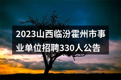 为进一步加强事业单位工作人员队伍建设,根据《事业单位人事管理条例》、山西省《关于进一步改进和加强事业单位公开招聘工作的意见》(晋人社厅发〔2017〕35号)和临汾市委组织部、临汾市人社局《关于做好2023年全市事业单位公开招聘工作的通知》(临人社发〔2023〕10号)等政策规定和要求,结合临汾市委组织部、临汾市人社局下达的2023年度事业单位公开招聘人员计划,经临汾市委组织部、临汾市人力资源和社会保障局备案,霍州市委、市政府同意,霍州市拟面向社会公开招聘事业单位工作人员330名。现将有关事项公告如下: